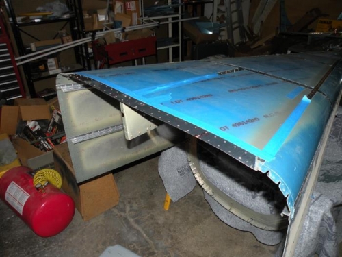 Not much time today, so I masked the forward end of the aft fuselage skin for scuffing, cleaning, and priming where it underlaps the center fuselage bottom skin.