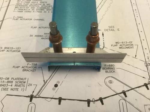 I fit and drilled the F-785B attach angle to F-785A channel. After taking photo 2, I noticed I had mis-positioned the angle by placing the bottom of it 1/8" higher than the bottom of the bracket instead of 1/8" lower. I have ordered a new channel, but will re-drill the angle in the correct location on this one and continue work on the flap system.