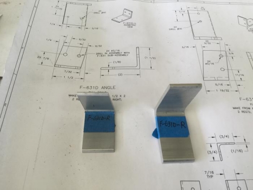 Cut access holes in aft F-631A-R and L channels. Fabricated F-631C-R and F-631D-R angles. Still need to drill holes in those angles.