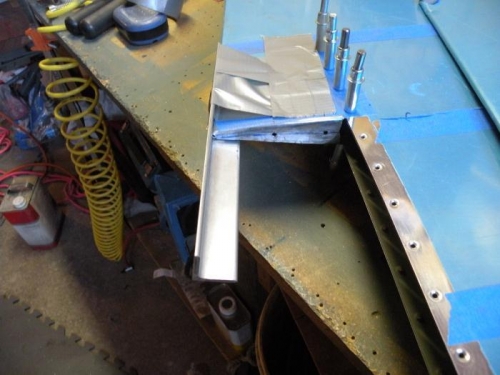 Forward hinge half match drilled to skin and trim spar. Gap is 3/32" at the bottom and 1/4" at the top