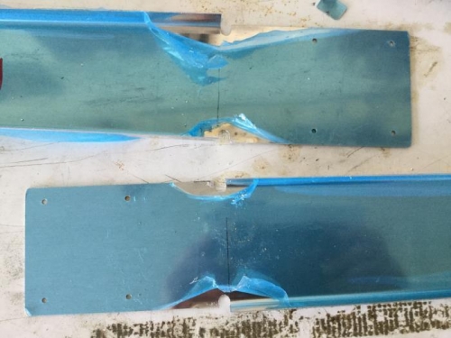 The spar doublers came separated (by Vans to fit in the mailing tube), so all I had to do was sand off the nubs. Also, all of the rivet holes inboard of the bend line are pre-punched in the -1 version of the doublers, so drawing the lines called for in the instructions isn’t necessary.