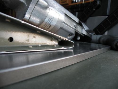 I finished up by riveting the aftmost rivets in the top and bottom of outboard end rib. I used the indirect method as shown in a December 19, 2008 EAA Hints for Homebuilders video ( http://eaavideo.org/video.aspx?v=5337092001 ). It worked fairly well, though I did have to turn up the pressure on the gun to about 60 psi. The results were fairly decent (photo 3). The top rivet head did come out slightly proud, though not bad enough in my estimation to risk drilling it out.