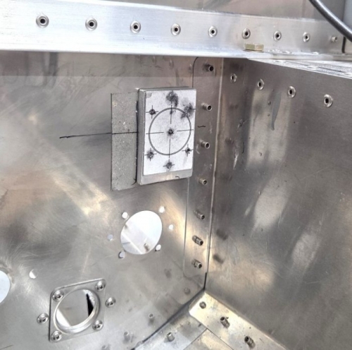 Because the new location is in a much harder place to drill (did I mention that the holes had to go in the STAINLESS-STEEL firewall and I don't enjoy that kind of drilling activity?), I made a drill guide to improve the possibility and probability of success as eyeball pass throughs require seven pretty accurately located holes.