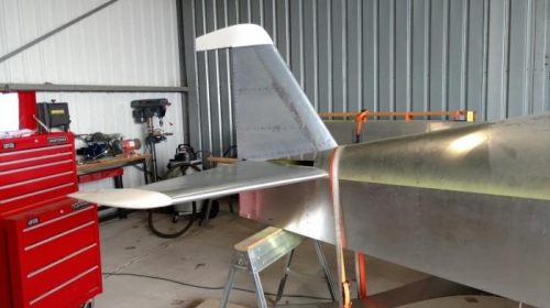 I finally have the Sonex standing on it's own. The tail is still so light that is needs to be strapped down to keep from tipping over on it's engine.