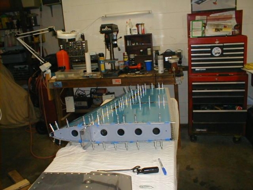 Deburred, Dimpled, Riveted all ribs to foward spar on vertical stablizer