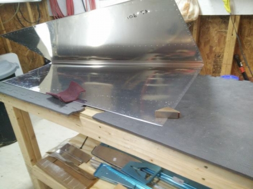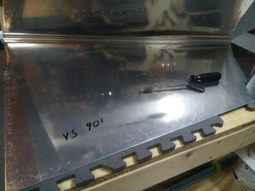 Used deburring tool to deburr all the rivet holes on the vertical stabilizer VS901 skin. Used a vixen file and scotch brite pad to polish up the edges.
