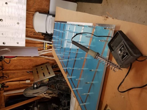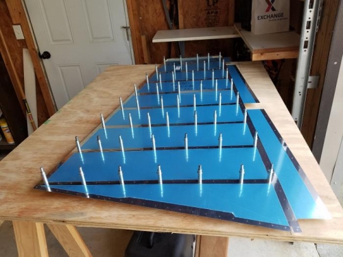 Fabricated Rudder Stiffners and attached to skin. Removed the film along rivet lines using a blunted soldering iron.
