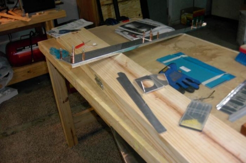 Made two rudder attach strips and a shim to attach the rudder brace. Trimmed the rudder brace to size using a cutting wheel and a Dremel tool. Worked much better than the band saw.