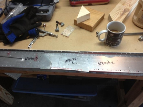 Drilled and prepared the left rear spar including the reinforcement plates.