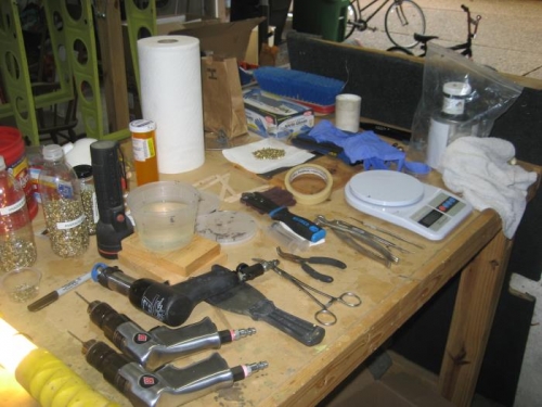 Lots of MEK. Masking tape, Lots of paper towels. Forceps, dental picks, cleco pliers, etc.