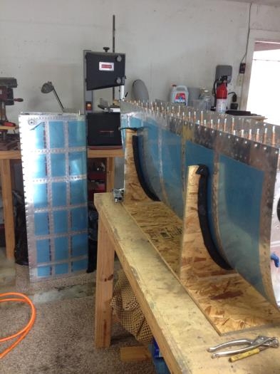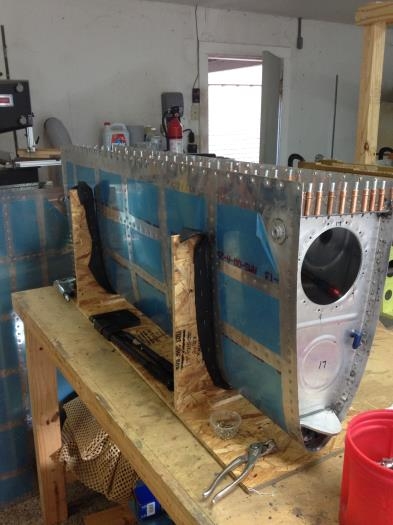 Riveted the baffles on the wing tanks. Also bought a rivet squeezer for the z-brackets and ground it flat to fit.