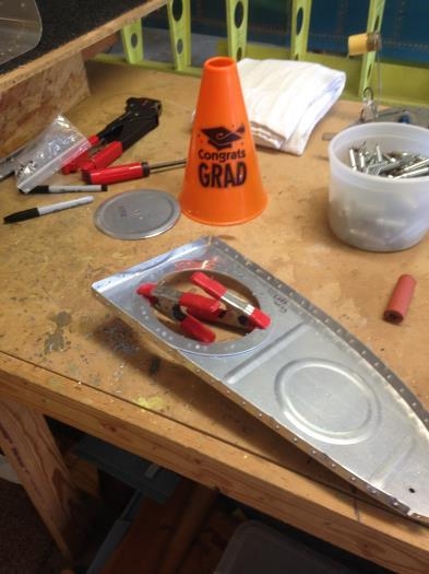 Used the fly cutter to cut the inspection plate holes in the two end ribs. Took me half an hour to find the fly cutter and another half to get it set up. That's why working every two months is a bad idea. :-(