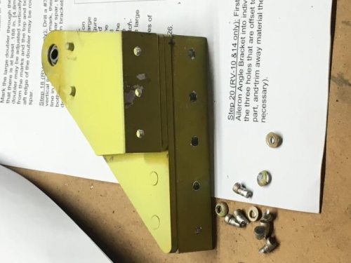 Drilled out all the rivets holding the mid-wing aileron attach bracket.