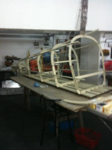 Start to layout and assemble. Ribs all fit ok . Longeron assemblies done, and cable tied into place. Have to flip the assembly on its side to attach the side skins prior to rivets.