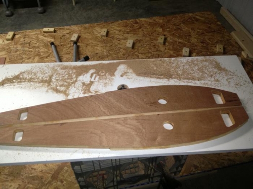 - drilled 1/2" holes for pilot bearing in pass-thru, front spar opening & rear spar opening