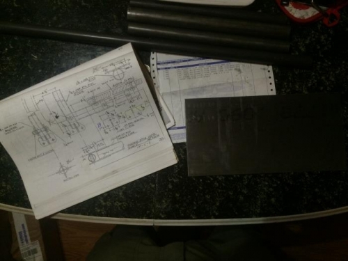 Control stick parts arrived from Aircraft Spruce. Various sizes of tube steel, and a sheet of .09'' steel. One part was mis-ordered and will be returned (need bushing 3/8'', not 7/8'' tube).