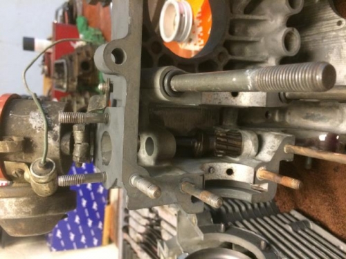 2. Installed distributor to hold shaft in position, aligned to #1 firing order (note: existing distributor cap was misnumberd with a sharpie marker). Conflict with manual descriptions but resolved with online guide. DISTRIBUTOR WAS INSTALLED JUST TO HOLD SHAFT IN UNTIL MAGNETO IS PURCHASED.