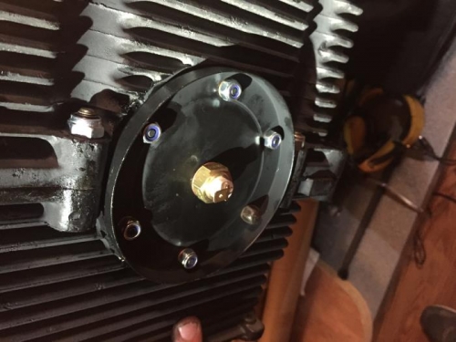 Case hardware arrived after a 3 week wait...Case halves joined, permatex 3H liquid gasket, and locknuts. Ensured crank spun freely. Installed oil screen/plate/temperature sending plug. Installed oil pump,gaskets,cover.