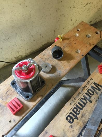 This avoids extra cost, and utilizes a part I already bought with the engine, plug is plumbing pressure plug for a 1.5'' hole, the wing nut tightens and expands a rubber gasket and is very tight when installed.