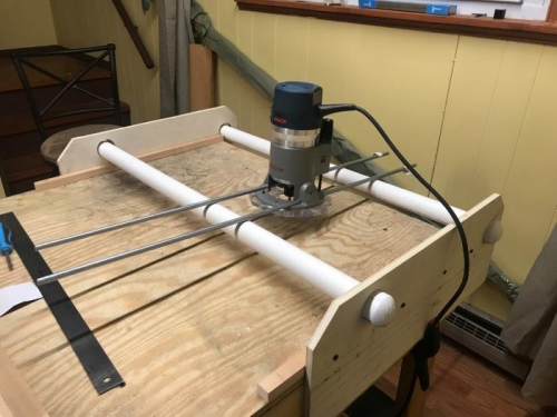 Scarf Jig-rails attached and set-up for depth