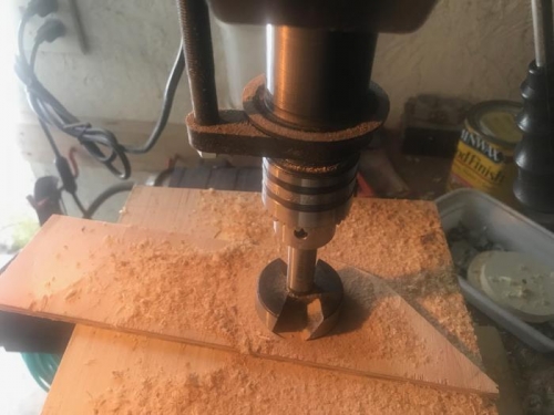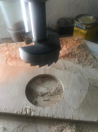 Drilled test hole in scrap for 2" hole in Vertical Tail ribs