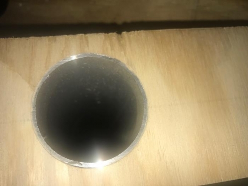 Test-fit scrap with 2" hole to tube