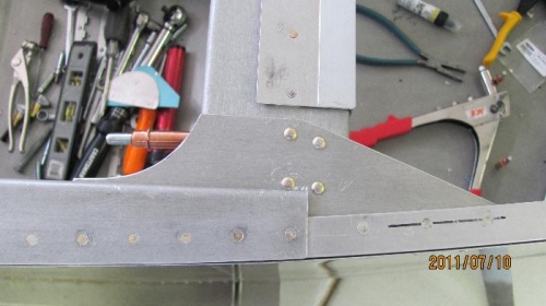 Today I am inspecting the rails and gussets on drawing 25. Looking at F 757 drill out rivets. remove F757 and shape as per plans for a sliding canopy. Reinstall and test fit. Rivet F-757 to side rails. Picture was taken at a later date.