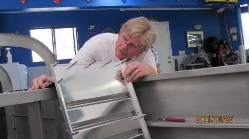 built seats backs today, drawing 30. Cut .125 angle for side support, cut top and bottom cross braches out of .063. Matched drilled and deburred. Deburred and riveted right seat back. attached to fuselage and sat in the bird! Made seat back support and cut lightening holes in them. deburred each. Located piano hinge adjustments on seat bottoms and on on seat backs to support bracket.