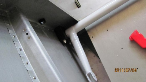 Open up the ends of the weldment to 1/4 inch as per plans. Drill F680 center block and cut it in half. Mount actuator arm (weldment) install end blocks and torque nuts to 25IP. Fit, prep and rivet electric flap mounting channel to fuselage. Install motor mounting brakets. Check angle on motor at 1/2 extension. Mount motor angles to channel. Prep aluminum and primer.