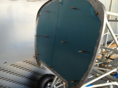 Drilled engine mount holes in firewall. Enlarged holes for best fit. Temporary fit of firewall and engine mount.
