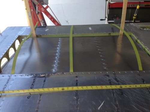 Primed fuel tank straps. Put adhesive backed felt on straps. Measured, bent, and cut straps.