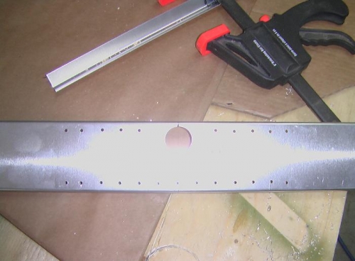 Troy and I laid out the Torque tube doubler plate. Drilled on the drill press with a spade bit. worked great when we clamped together with a wood backing.