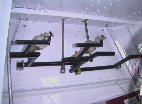 Drilled and installed brake master cylinders. I checked alignment and foot position in the plane to be sure that they would be in a comfortable location. I marked the location and the rivet line to enure that the rivets, for the two end bearings, will be located throught the longeron on the fuselage floor.