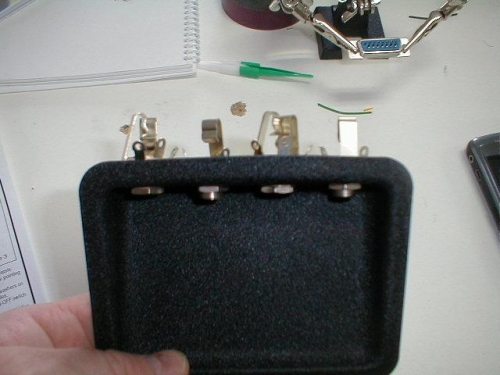I started to work on soldering the headset jacks into the mount that I purchased. This will be cut into the floor of the baggage compartment.