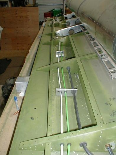 I made small brackets out of some pre bent channel that I had left over. i then drilled holes and added rubber gromments. I ran the Pitot, AOA lines, fuel lines and electrical to the wing root
