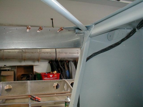 Spent most of the day trying to gete the pilot side frame correct. The pre bent 1/2" alum tubing was not quite the right shape for my opening. I used my template of plywood and filled the 1/2" tubing full with sugar. The sugar helps the tubing from crimping while your bending. The other option was to get a tube bender. I got the correct shape and mounted the tube frame to the piano hinge that is already rivetd to the door sill. I shimed around the frame in the opening so that I was sure of clearance for closing. I then used duct tape to set the bubble door and align as required. Once aligned with the proper or required overlap, I back drilled a couple of holes in the hinge. Clecoed and held there until I could drill out the rest. Now I marked the perimeter overlap around the opening. Next I can mark and cut the gussests that are required in the top corners as well as add a top strip of .025 Aluminum to th etop of the door. The instructions for the bubble doors I would have to say are incomplete. As well th edrawings do not rflect the bubble doors they are still showing the flat panel doors.