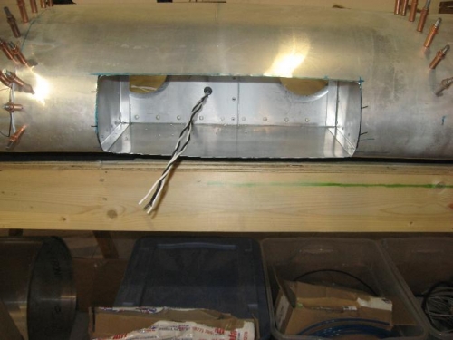 Cut the leading edge of the right wing to accomadate the landing and taxi lights. Started to run wires. Built two false ribs to enclose the lights and provide stability to the leading edge. Night flying here I come. I have prefromed in the oven a lexan lens for the leading edge. Not sure the method to install it yet. Probably will use nut plates and screws.