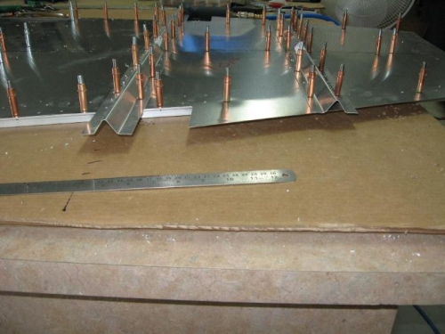 Added the floor stiffners to the forward fuselage. Back drilled thru bottom side of cabin floor