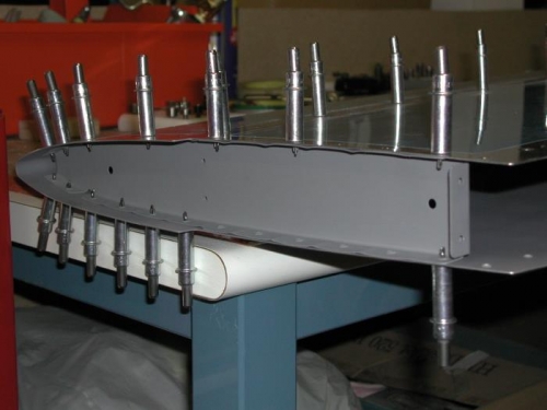 Dimpled right side HS parts, primed ribs and spars, assembled skeleton.