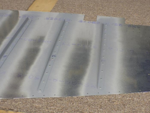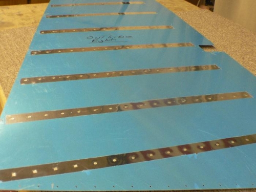 Back riveted the stiffneners on the right and left Rudder skin. Back riveting really produces nice rivets.
