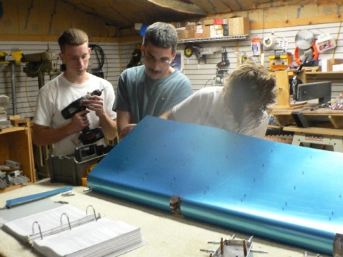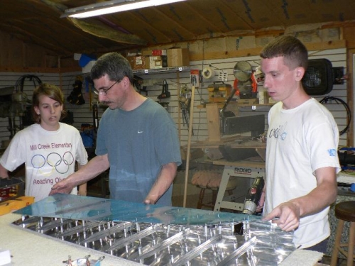 Manufactured the stiffners and fitted them to the Skin. Back drilled the skin to the stiffners and depburred and dimpled. It really went fast with all the help.