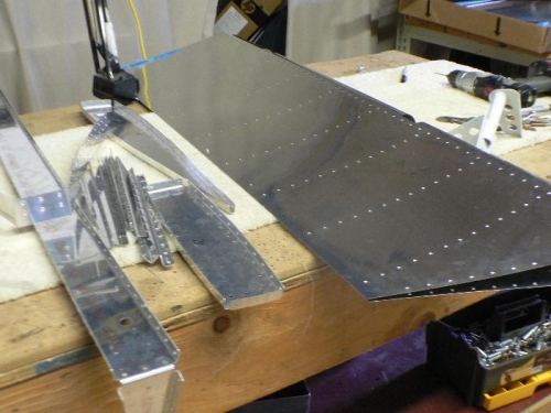 Dimpled all holes and began the deburring process.