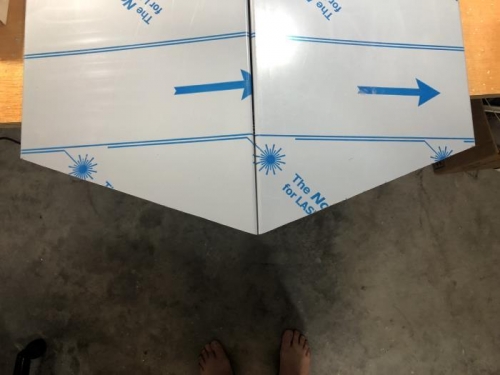Cut R & L ruddervator skins to 45 9/32 on long end. Short end is -4 3/8 or 20 degrees.