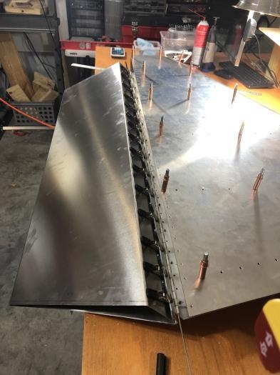 First trial fitting of rright uddervator to stab. This was done to check alignment and hinge hight on ruddervator BEFORE drilling holes for the hinge!