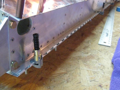 Then I used cleco clamps to hold everything firmly. Tomorrow I'll flip the wing to locate the aileron hinge, and to drill into the flap hinge.
