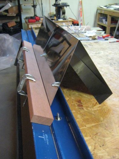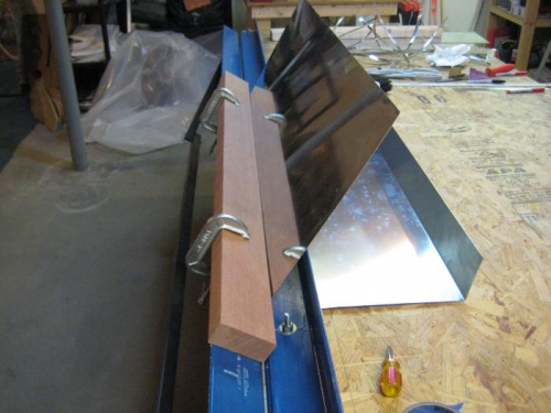 - First did a test run on a narrow piece of aluminum of the correct length, with the bend lines drawn. It came out a little short (about 2mm, which DOES make a difference with the skins).