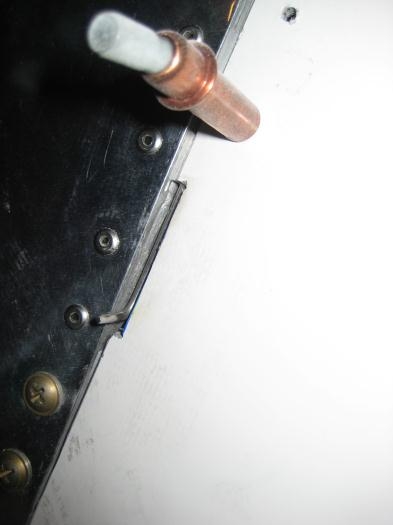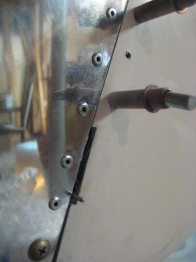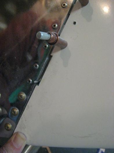 Different views of the bent hinge pin and the slot cut in the cowl to accept it.