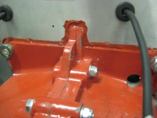 3. The only RTV I have used around the engine/baffles is here where the baffle meets the top of the engine block. Guess what? "Red" RTV is actually a perfect match for Chevy engine orange!