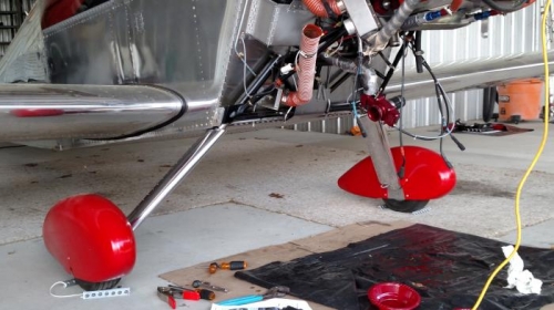 I finally got around to making new gear leg fairings. They are attached with a pair of Adel clamps inside the fairing and attached to the gear legs.