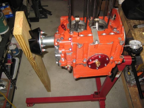 With a 2x6 firmly bolted (minimum 3 bolts) to the prop hub, I could let that swing against the engine stand leg to give leverage for using the big torque wrench.